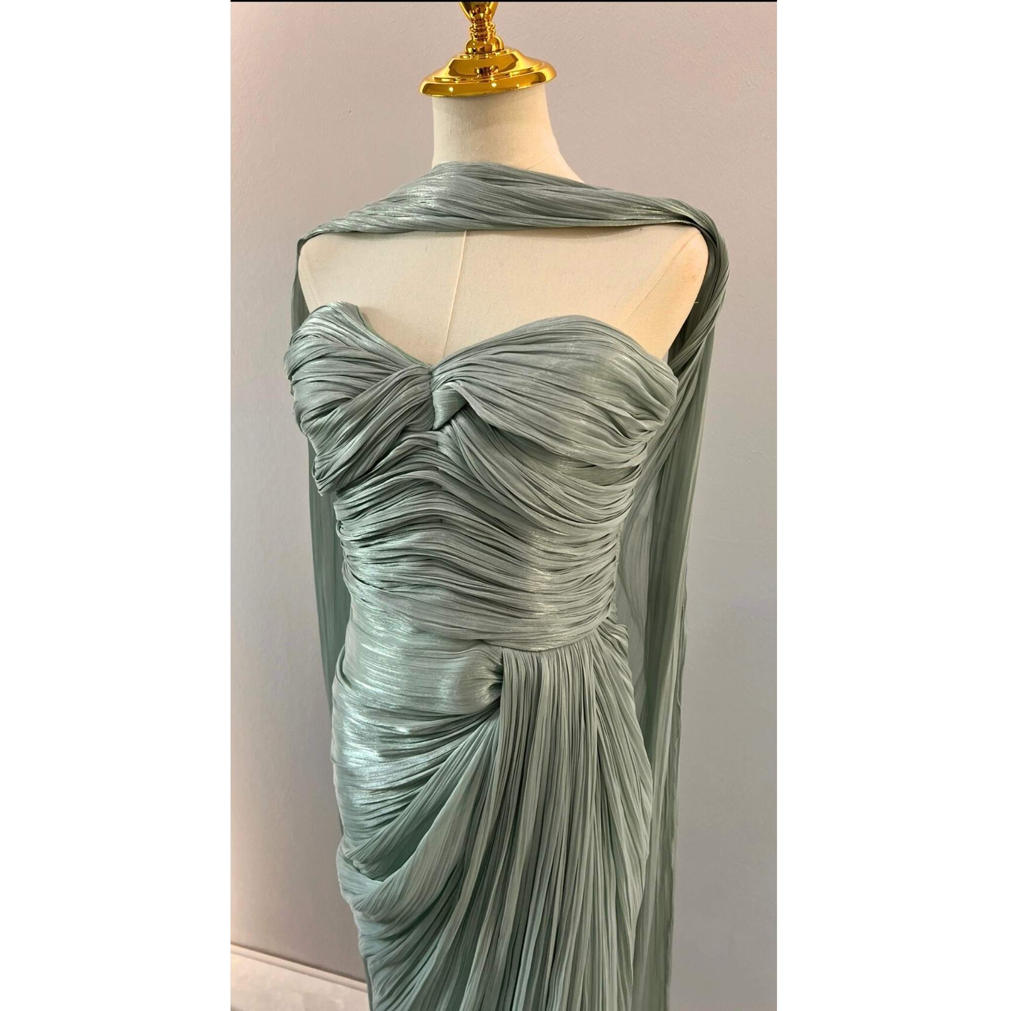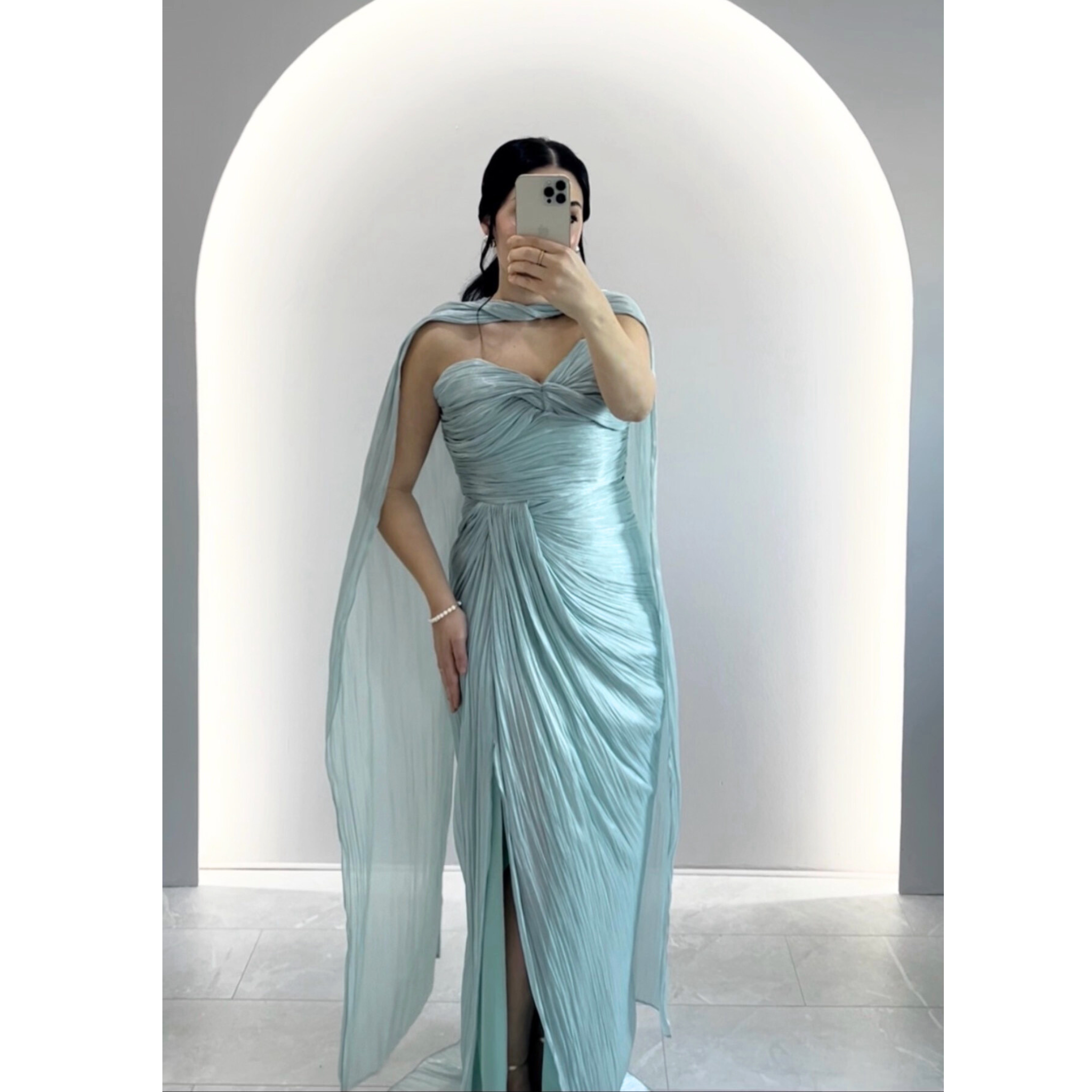 Die zarte Mintfarbe unterstreicht den frischen, eleganten Look und verleiht dem Kleid eine sanfte, luxuriöse Ausstrahlung – perfekt für besondere Momente.
